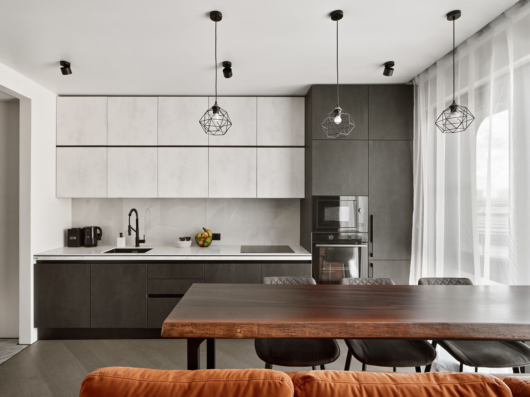 Фасады могут быть любыми. Возможно использование МДФ с покрытием пленкой, термопластика или акрила, закаленного стекла, шпона и других вариантов отделки. Для каждой модели доступны большая цветовая палитра, выбор текстур и вариантов оформления дверей. Наполнение можно сформировать индивидуально, исходя из требований к организации хранения. Для моделей с распашными створками мы используем качественную фурнитуру. Она обеспечивает плавное и легкое перемещение даже тяжелых дверей.
