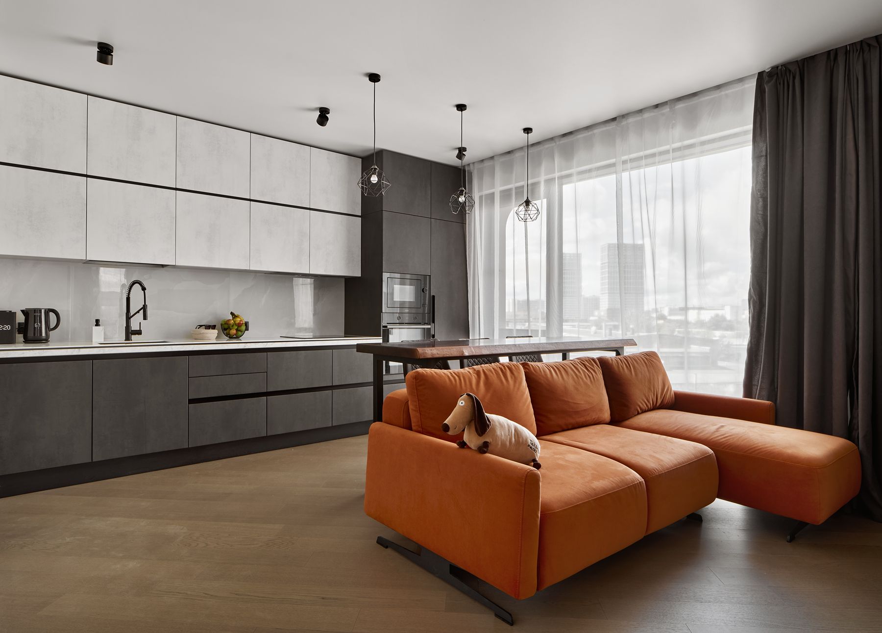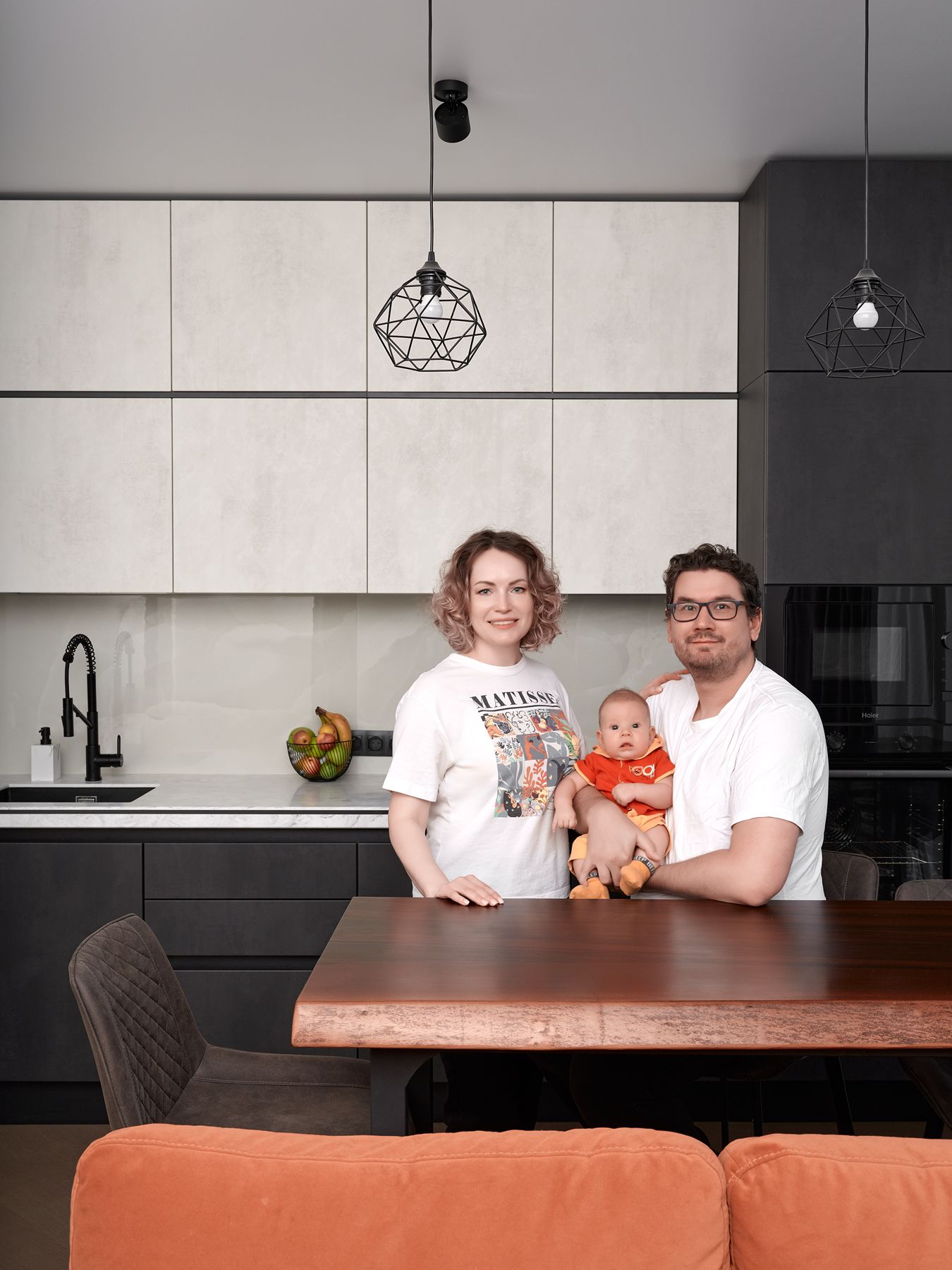 О проектеОписаниеЭтот проект – пример того, как создать комфортную и функциональную среду для молодой семьи, где каждый сантиметр работает на удобство, а дизайн отражает характер хозяев. Задача состояла в комплексном оснащении всей квартиры, включая кухню-гостиную, санузлы, кабинет и спальню, с акцентом на практичность, долговечность и безопасность для малыша и домашнего питомца.